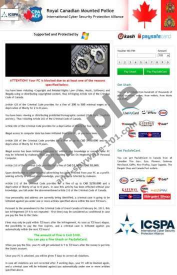 Just like other ransomware infections from the Ukash Virus group, International Cyber Security Protection Alliance Virus blocks desktop access and lists a number of reasons why it happened (supposedly). International Cyber Security Protection Alliance Virus is also known as ICSPA Virus, United Kingdom Police Virus, Royal Canadian Mounted Police Virus and many others. There are quite a few different versions of this infection, targeting users in different countries. International Cyber Security Protection Alliance Virus changes its interfaces according to your location, and adds a local law enforcement authority symbol to its interface, to make it look more believable.