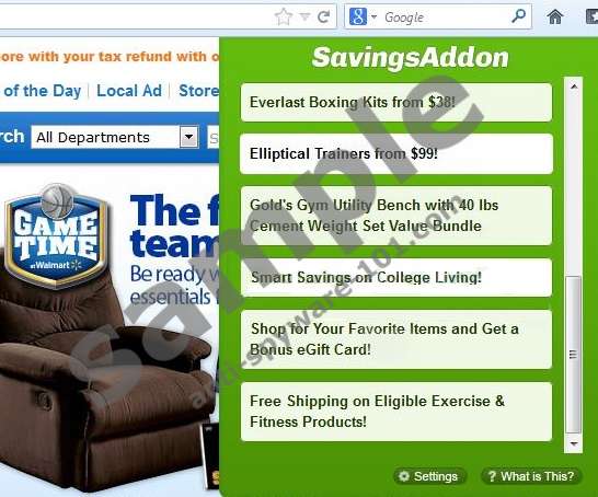 If you wish to browse the web without any hidden risks, Anti-Spyware-101.com researchers recommend having Savings Addon removed from the computer. The program can be applied on the most popular Internet browsers – Google Chrome, Mozilla Firefox and Internet Explorer, from savingsaddon.com. The application has been created by the same developers (215 Apps and Innovative Apps) who released Vidsaver, Savings Explorer, Savings Vault, Deal Boat and other potentially unwanted browser add-ons. The main task for the extension is to present virtual saving deals, coupons and beneficial pop-up ads whilst shopping online. The slogan of the extension states: ‘With SavingsAddon, you don't go anywhere to find savings, and we apply coupons for you with a single click. Stop spending time searching for coupons.’ Does the application seem beneficial to you? Then continue reading to find out why it is advised to have it deleted from the PC.