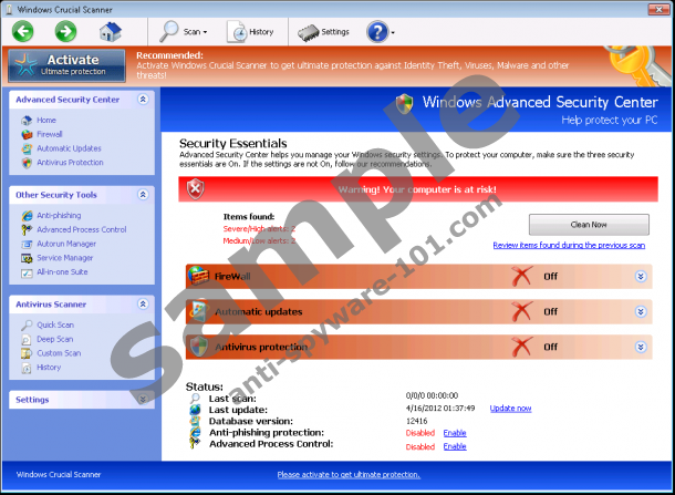 All these problems arise either due to irresponsible surfing on the Internet or social engineering. For example, a user clicks on a suspicious link and a Trojan is downloaded into the system at once. Moreover, there might be some cases when instead of a video codec a Trojan is downloaded which, in return, installs Windows Crucial Scanner into the system. Your system does not need this rogue and you should remove Windows Crucial Scanner at once.