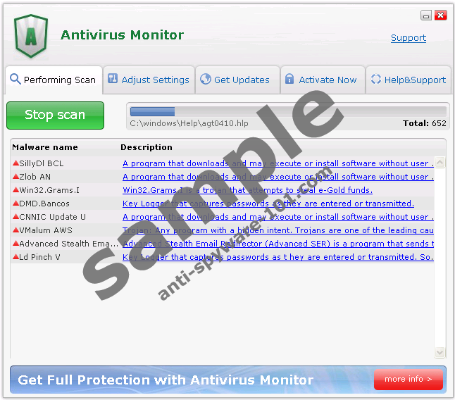Do not trust rogue security tool Antivirus Monitor. This rogue security tool was designed with the explicit intent of ripping honest consumers off. Antivirus Monitor pretends to be a genuine security tool but in reality is nothing more than a sophisticated online scam. Despite what it would like its victims to believe, Antivirus Monitor will not be able to detect, quarantine or remove any type of infection. Instead it will leave the user with a bunch of headache inducing problems while stealing his money.