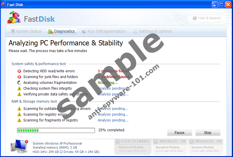 No rogue disk-fixing application is ever good and Fast Disk is no exception. In fact Fast Disk is extremely bad and will make use of all types of harmful tricks and tactics in order to try and make you believe that your PC is infected. This has all been conjured up by malicious people who made Fast Disk and who will do anything and everything in order to obtain your money. Do not be fooled by false computer security notifications which alert you to various threats which you have on your machine because the truth of the matter is that you don't have any threats on system except for the harmful Fast Disk itself.