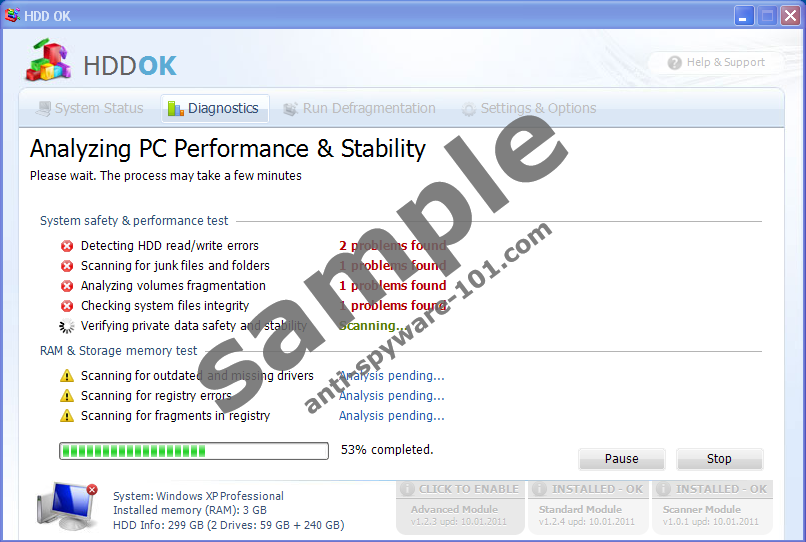 HDD OK is a fake disk repair software reporting fake hard drive errors as well as other system erros. It is usually distributed through a trojan which trick users into installing this fake software. Just after installation HDD OK will run a disk scan and will report many errors and will require to buy a full version. HDD OK will also show various warning messages that look just like real Windows messages related to Your computer.