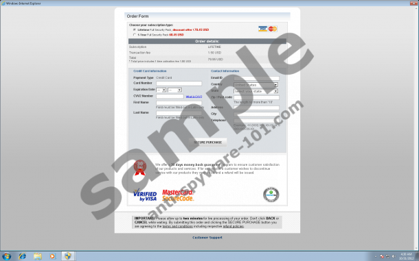 PC Defender Plus gives even more examples of what can happen to your system if the infection is untreated. It offers an "effective" solution to your problems - you simply need to pay 78.45 USD for a lifetime Full Security Pack and the infections will gone.