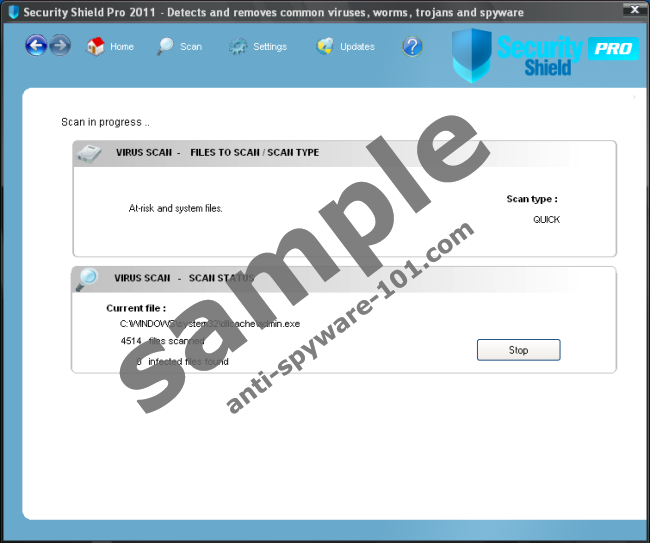 Security Shield Pro 2011 uses various established forms of infection, some of which include bogus online malware scanners, and bundled third party downloads. Another popular form of infection Security Shield Pro 2011 makes use of is browser hijacking web domains. These browser hijackers uses drive-by download tactics to infiltrate and root the Security Shield Pro 2011 into its prospective host PCs.