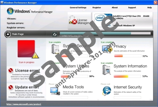 Windows Performance Manager is a rogue anti-spyware application which comes forth with intention to rip you off. It roams around the vast spaces of the Internet, lurking hidden in fake online malware scanners and browser hijackers. One single click and you can be infected without you even knowing it. Therefore, you should take your computer’s safety into serious consideration and protect yourself from such threats as Windows Performance Manager.