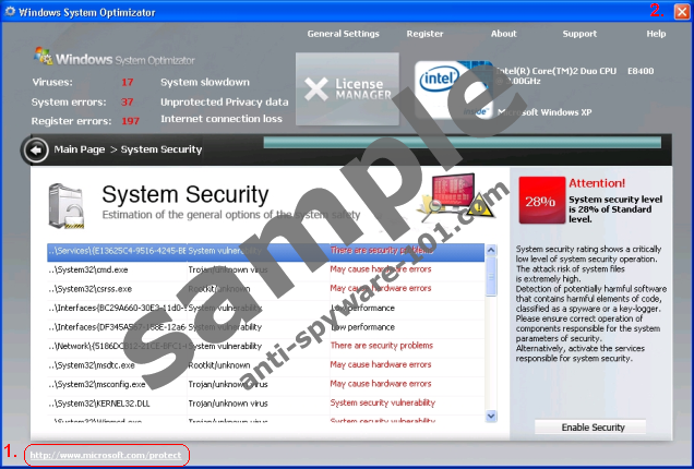 And just after the reboot Windows System Optimizator gets very tricky – it won’t allow to use anything else, and there is almost no way to fix the blocked computer (even safe mode). It will show various warning messages and will constantly ask to purchase a full version. We analyzed the software and found a way to bypass the locked screen.
