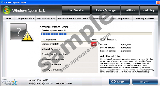Windows System Tasks is a rogue antispyware application which looks very much like a genuine security tool. However, that is one of the tricks that this computer threat has up its sleeves so to speak. It pretends to be a useful program with intention to rip unsuspecting consumers off. That is the reason why you must destroy Windows System Tasks before it causes a great harm.