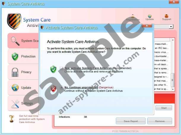 It is essential to have the rogue removed from the computer. If you do not perform this task, your operating Windows system is likely to be corrupted by more dangerous infections and you will not be able to run it safely. If you do not want to take any risks but you do not know how to perform manual System Care Antivirus removal, it is recommended that you use automatic spyware detection and removal software. This option fits both experienced and inexperienced Windows users.